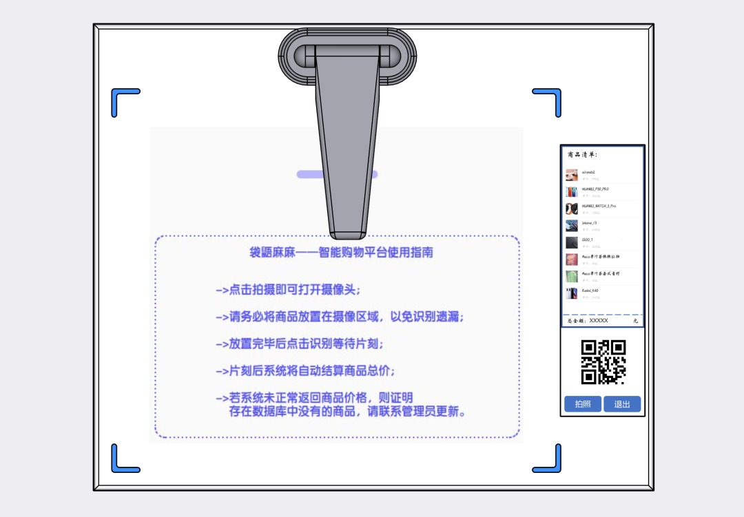 当顾客将自己选购的商品放置在制定区域内时,Smart_container能够精准地定位识别每一个商品,并且能够返回完整的购物清单及顾客应付的实际商品总价格。而当系统有新商品增加时,只需更新检索库即可,无需重新训练模型。