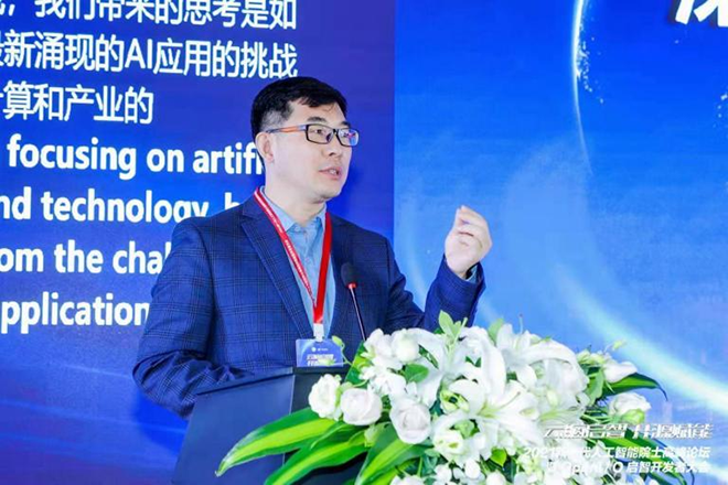 加快发展人工智能是落实科技自立自强的重要抓手,对于构建完整技术生态链,推动产业转型升级具有十分重要的战略意义。致辞中,科技部高新司副司长梅建平指出,近年来我国人工智能创新体系和生态建设取得了明显进步,但在底层算法、关键软硬件和 AI 生态体系等方面与国际先进水平还存在差距。他表示,希望各位院士专家、行业翘楚携起手来共同实现破解和突破,并以此届高峰论坛搭建的国际化交流平台为契机,为我国新一代人工智能建设发展建言献策,为我国高质量发展插上智能化的翅膀。