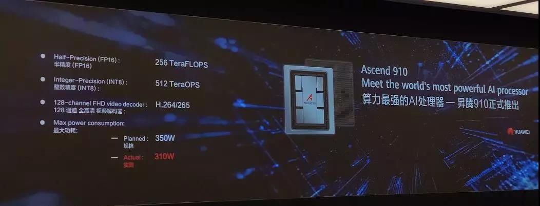 2018 年 10 月,华为在上海举办的全连接大会上公布了两款芯片:昇腾 910 和昇腾 310,并表示它们将在 2019 年面世。