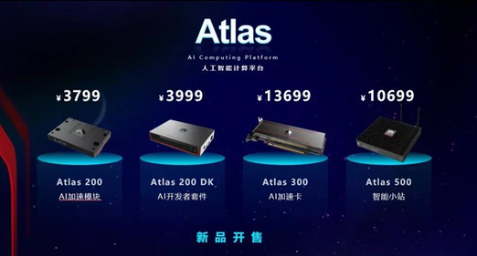 据介绍,Atlas人工智能计算平台包括Atlas 200 AI加速模块、Atlas 300 AI加速卡、Atlas 200 DK AI开发者套件、Atlas 500智能小站四款产品。
