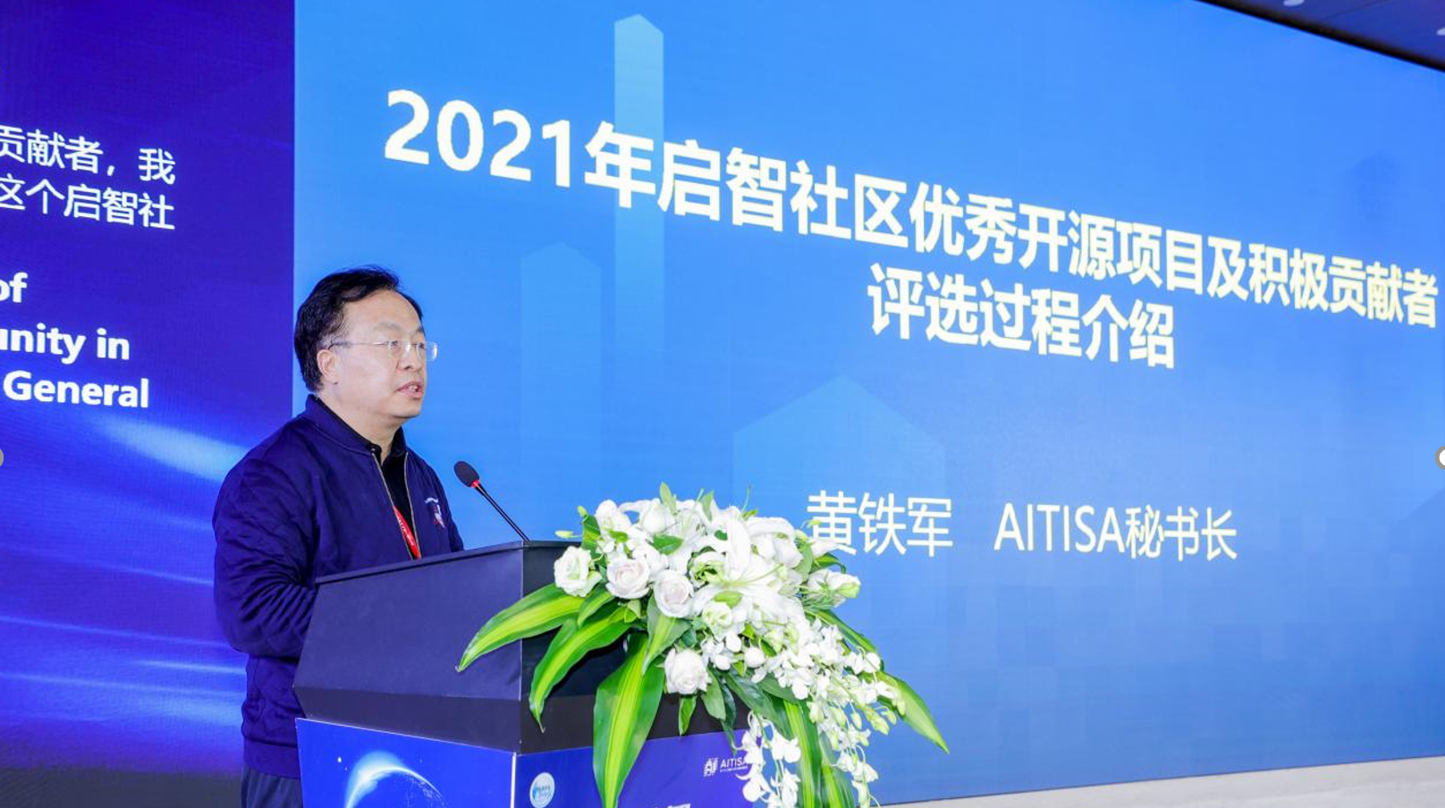 AITISA 秘书长、 技术委员会主席黄铁军教授在评选情况介绍时表示,“ 专门有优秀开发者激励管理办法,奖励资金既有新一代人工智能重大科技项目的支持,还有鹏城实验室配套资金的激励”。他介绍到,评选以项目的情况介绍、活跃情况以及开发者材料等为基础依据,通过与各个项目团队进行多次沟通,核实数据等工作后严格评审确定下来。针对评估所用的维度和参数,综合考虑了社区影响力、项目成熟度、开发活跃度、项目健康度、项目发展趋势等多种因素,希望更全面地反映开发者们在社区的贡献。