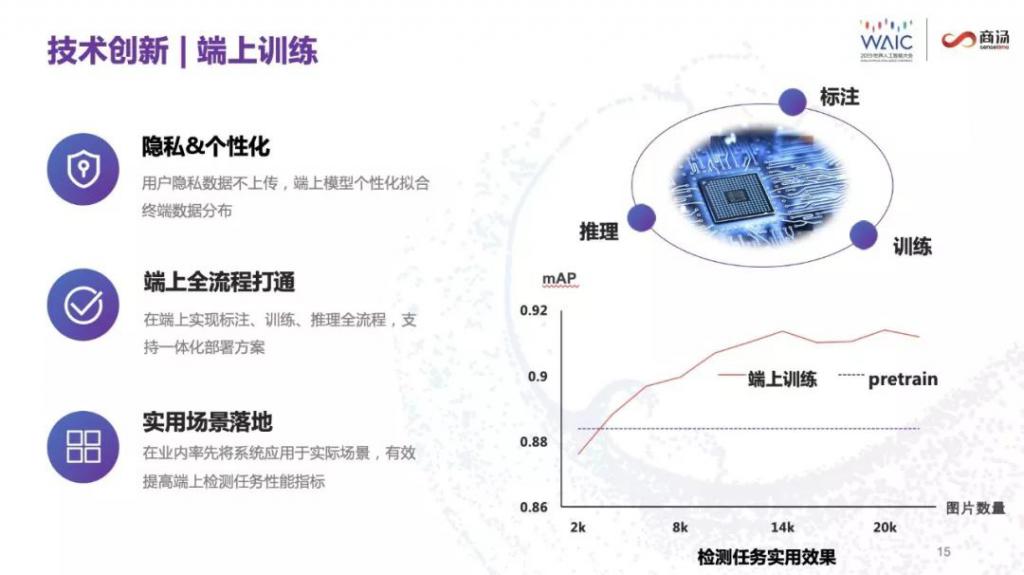除了技术性能的提升之外,我们也在多个层面、多个领域,进行积极的创新,走自己不同于别人的道路。比如现在主流的 AI 研发主要是把模型应用在这些设备上面进行推理。但是我们也开始了在端上进行训练的研发,在业界率先落地了我们第一个在端上进行训练的框架,现在已经投入到实际产品当中使用。