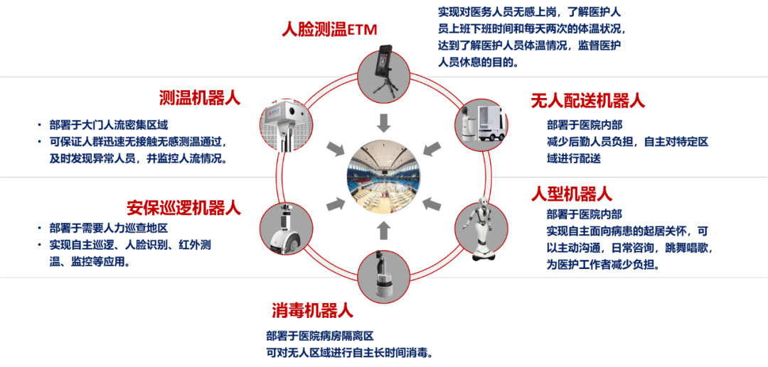 在此背景下,达闼(音:dá tà)机器人公司迅速响应,结合方舱医院的需求,基于云端大脑HARIX平台,采用最新的服务机器人、人工智能、物联网等技术设计了智能方舱医院方案。截至目前,达闼机器人公司已经在上海、福建、安徽、江苏、河北、浙江、吉林等十几个城市的方舱医院,完成了基于HARIX平台的智能方舱系统和机器人的部署,完成机器人无人配送、智能测温、空气消杀、安全巡逻等工作。