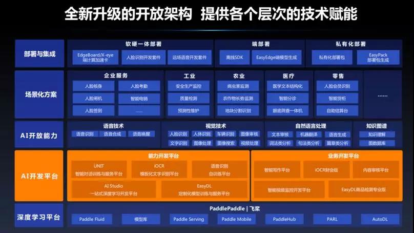目前,百度大脑已经是服务规模最大的 AI 开放平台,形成了业界最全面和领先的 AI 开放能力集合,以及最完备的 AI 开发平台矩阵。