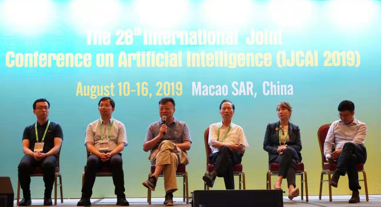 本届IJCAI吸引了全世界3000+名人工智能领域的学者,AI in China论坛颇具特色,论坛嘉宾包括:鹏城实验室主任高文院士、清华大学张钹院士、南京大学周志华教授、港科大张潼教授、港科大冯雁教授、第四范式创始人戴文渊,论坛由IJCAI/HKSAIR 理事长杨强教授主持。广东省人工智能与机器人学会理事长、鹏城实验室主任高文院士发言指出:中国的人工智能发展和驱动力来源于高校、研究机构、大型企业,具备政策、数据、场景、基金、人才等优势,但也有理论原创、高端器件、领军人才、开源开放等短板,取长补短,这应该是粤港澳大湾区人工智能与机器人联合会的未来重要使命。