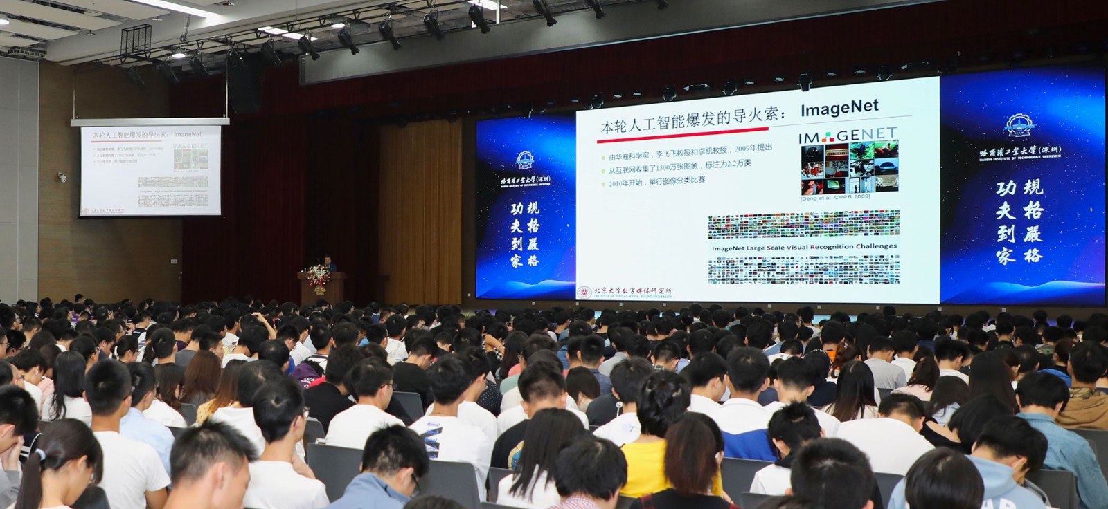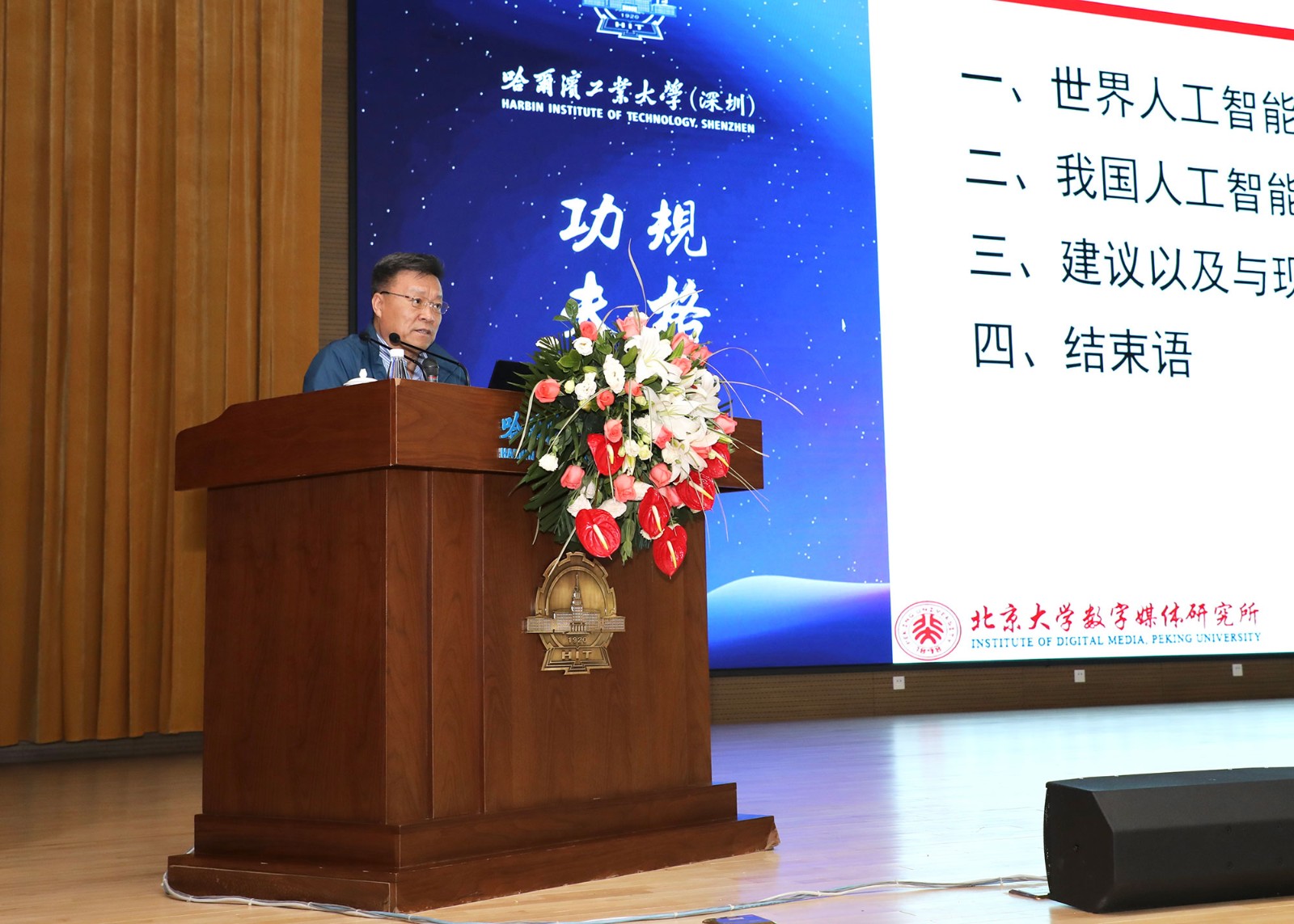 如今正处世界经济新旧动能转换的关键历史时期,由人工智能引领的新一轮科技革命和产业变革正积聚力量,人工智能也已成大国博弈的重要“赛场”。今年11月14日,深圳人工智能创新应用先导区揭牌,标志着深圳人工智能产业进入创新应用、深度发展、高质量发展的新阶段。在此背景下,11月15日,中国工程院院士、鹏城实验室主任高文受邀在哈工大(深圳)进行了以“人工智能发展现状与趋势”为题的讲座,深入浅出地讲述了世界人工智能发展的历程与趋势,并描画了人工智能未来的发展蓝图。此次讲座吸引了来自深圳多所高校近千名师生。哈工大(深圳)常务副校长甄良出席了此次讲座,讲座由哈工大(深圳)计算机科学与技术学院执行院长王轩主持。
