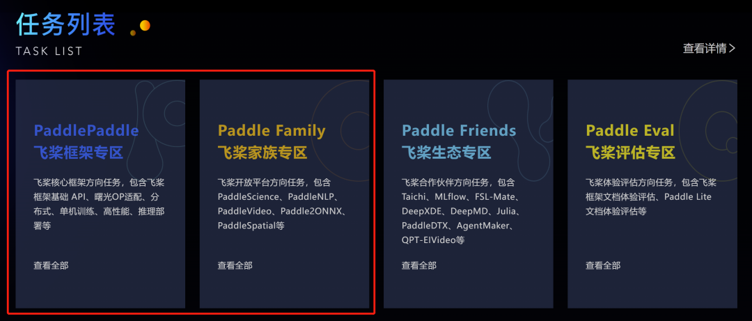 任务说明:本次活动100+开发任务,包括飞桨框架、飞桨套件等,更有飞桨与曙光(提供相应机器资源哟)、科学计算、区块链等结合任务,以及来自开源社区的项目,给你更丰富的深度学习开发体验。