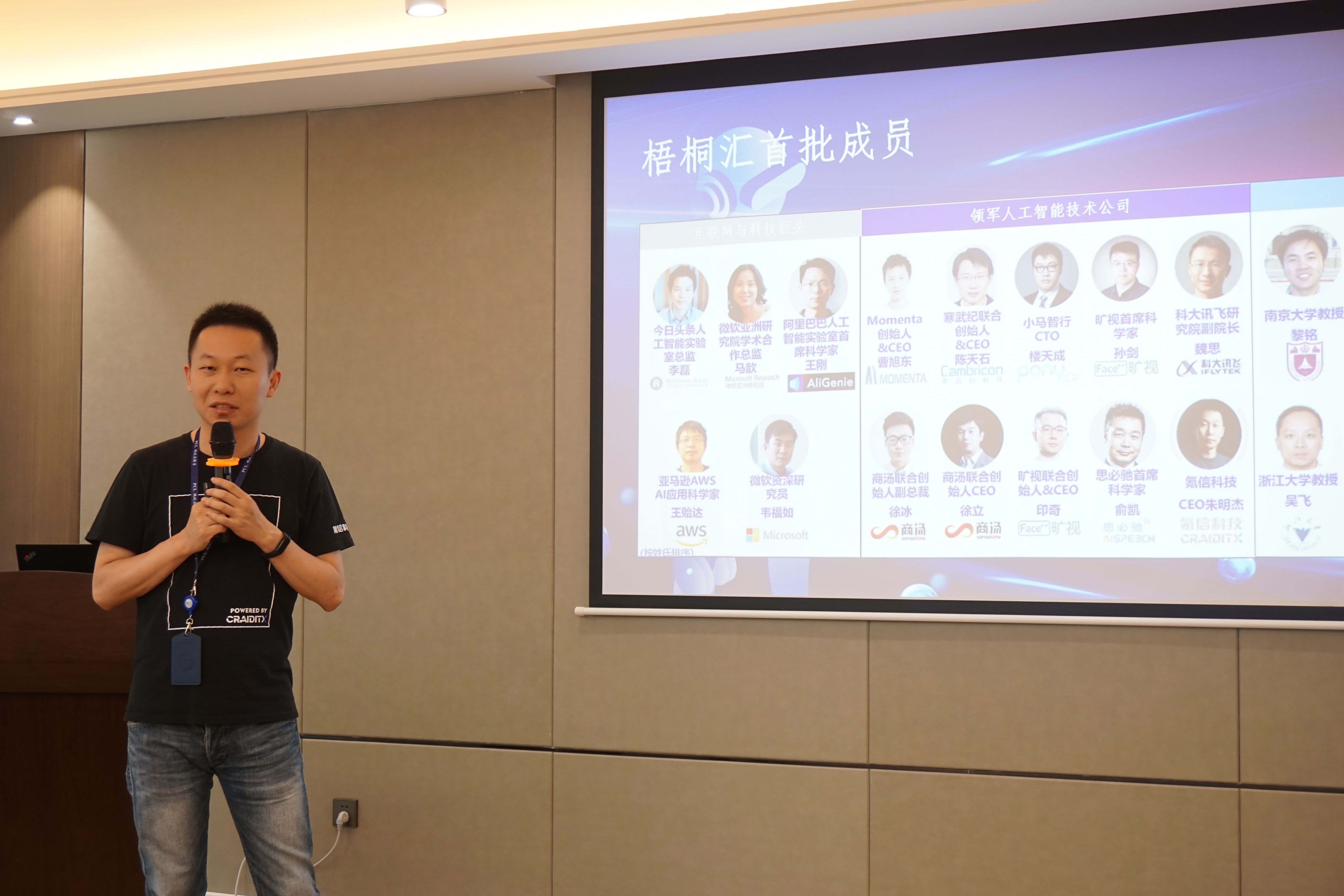 氪信科技创始人&CEO朱明杰博士,同时也是青年AI科学家联盟(创始)执行理事,他向与会者简要介绍了梧桐汇,并引用鹏城实验室常务副主任邹鹏的话说到:邹主任鼓励科学家和科创家都要扩建自己的朋友圈,激发更多能量,梧桐汇成立之初,就是希望能够连接产学研各界人士,做一个连接器。同时联盟首批会员吸引了很多互联网与科技巨头、领军人工智能技术公司和知名专家学者的加入,借助他们的朋友圈以及更加扩散的网络力量,促进各类主体资源共享。