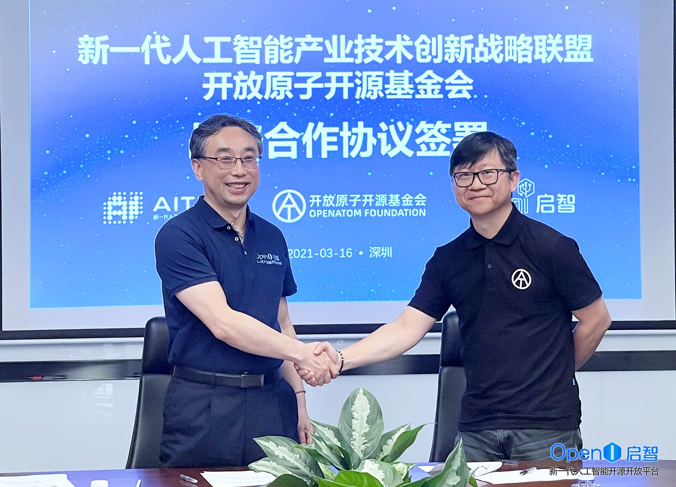 2021年3月16日,新一代人工智能产业技术创新战略联盟(AITISA)联合秘书长张伟民、开放原子开源基金会(OAT)理事长杨涛,分别代表AITISA和开放原子开源基金会签署战略合作协议。OpenI