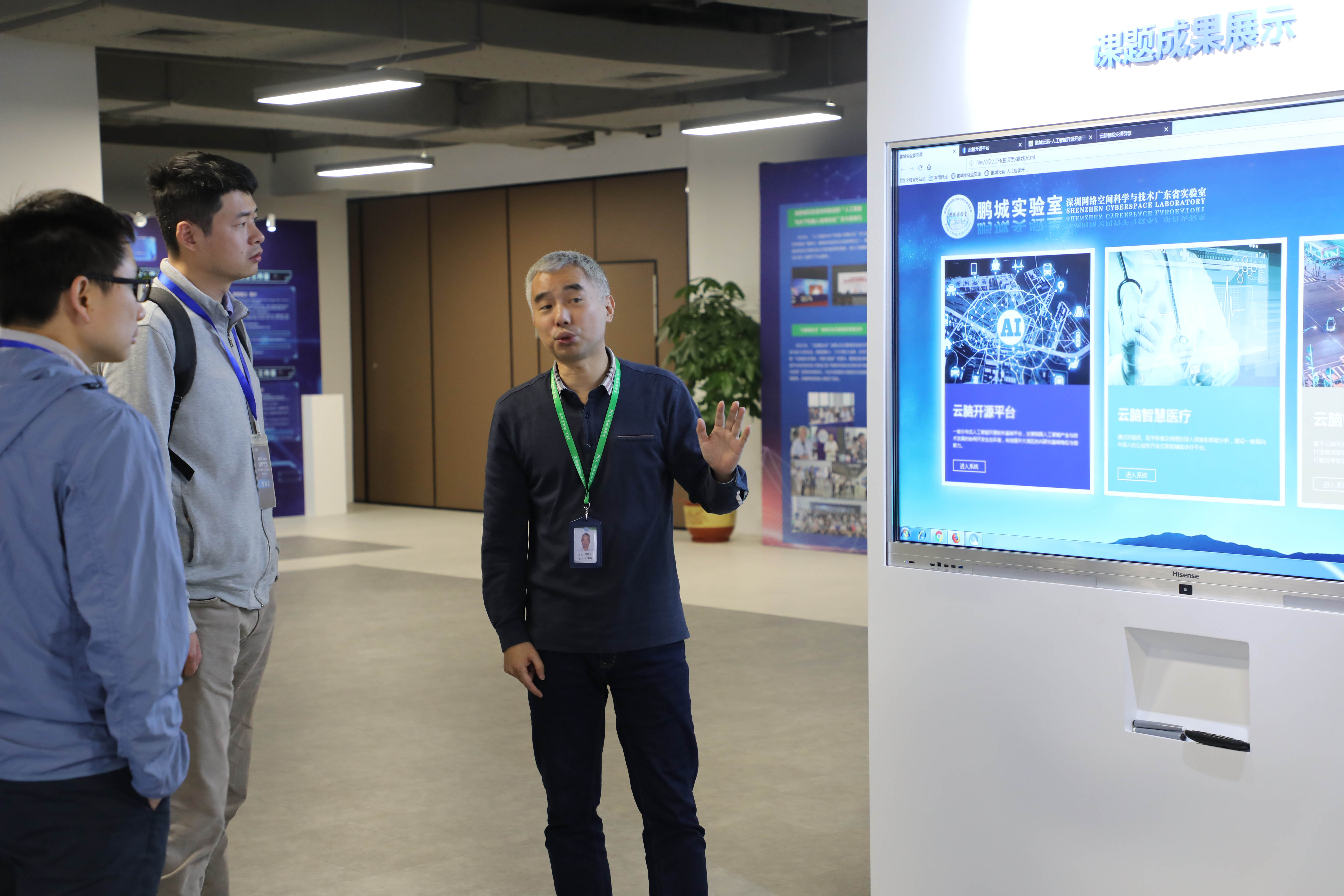 会后刘明主任和邱景飞主任带领嘉宾参观鹏城实验室展厅、AI大楼“云脑1号”系统,介绍了实验室的基本情况和最新发展。